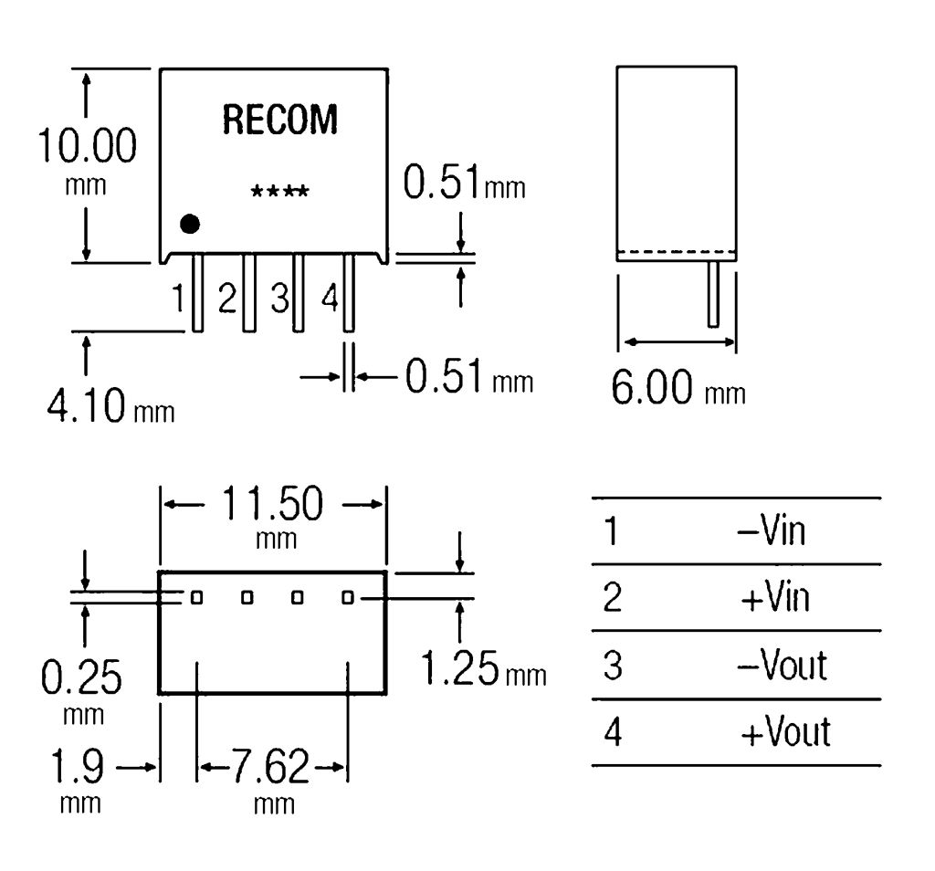 Recom 1W SIP Single Output Unregulated Isolated DC-DC Converter - RO Series