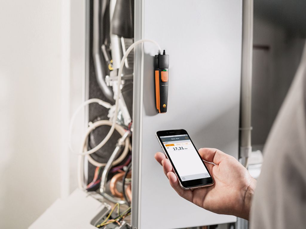 The differential pressure gauge testo 510i, in combination with a smartphone or tablet, is suitable for measurements of gas flow and static pressure, pressure drops on ventilators and filters, and for pressure-drop tests on gas pipes. It can also be used for determining air flow velocity and volume flow. Via the testo Smart Probes App installed on the end device, users can comfortably read off their measurement values, configure volume flow measurements quickly and easily, and reliably determine timed and multi-point mean values. The App also includes a measurement menu for the pressure-drop test including alarm. All measurement data can be presented either as a diagram or in tabular form. The measurement protocols can then be sent directly as PDF or Excel files.