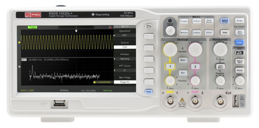 | Product description | RS PRO RSDS 1052 DL + Bench Digital Storage Oscilloscope, 50MHz, 2 Channels |