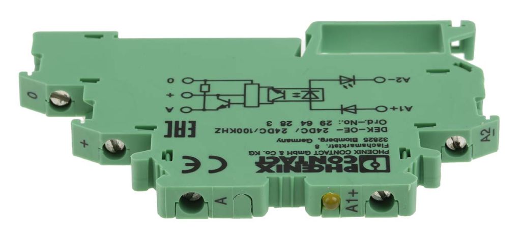 Product description Phoenix Contact Optocoupler, Max. Forward 24V, Max. Input 6mA, 80mm Length, -20°C Mounting Style