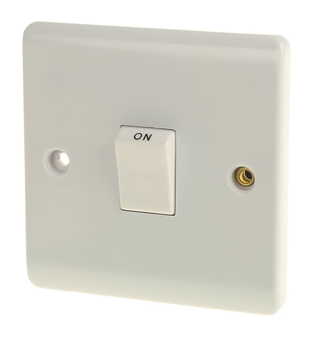 White 20 A Wall Mount Rocker Light Switch White 7 mm, 1 Way Screwed Matte, 1 Gang BS Standard, 250 V 86mm
