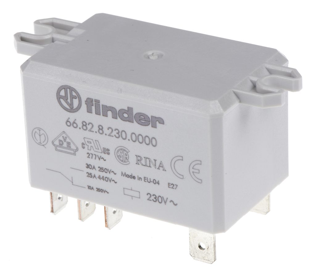 Finder, 230V ac Coil Non-Latching Relay DPDT, 30A Switching Current Flange Mount, 2 Pole, 66.82.8.230.0000