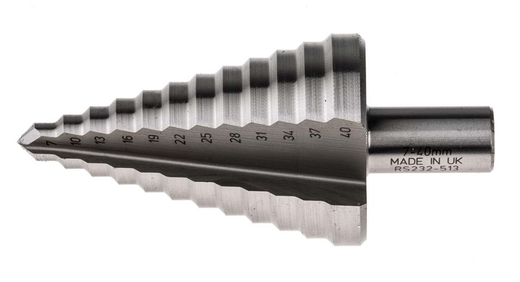 A step drill bit is an accessory that gets overlooked, the working principle is so simple you can drill multiple size holes without changing the bit and achieve a nice clean finish every time.