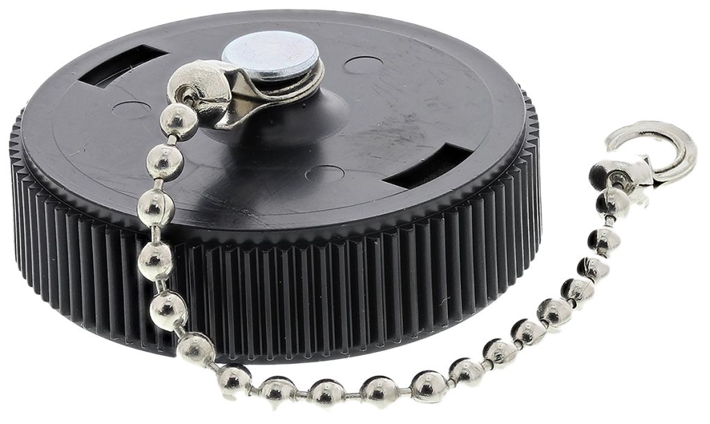 Sealing caps for Series 1, 2, 3 and 4 CPC connectors made from black 94V-1 rated thermoplastic with neoprene sealing gaskets fitted with plastic straps or a metal bead chain. These sealing caps are for use with CPC receptacle connectors with the exception of stock number 745-5750 which is for use on a socket connector.
