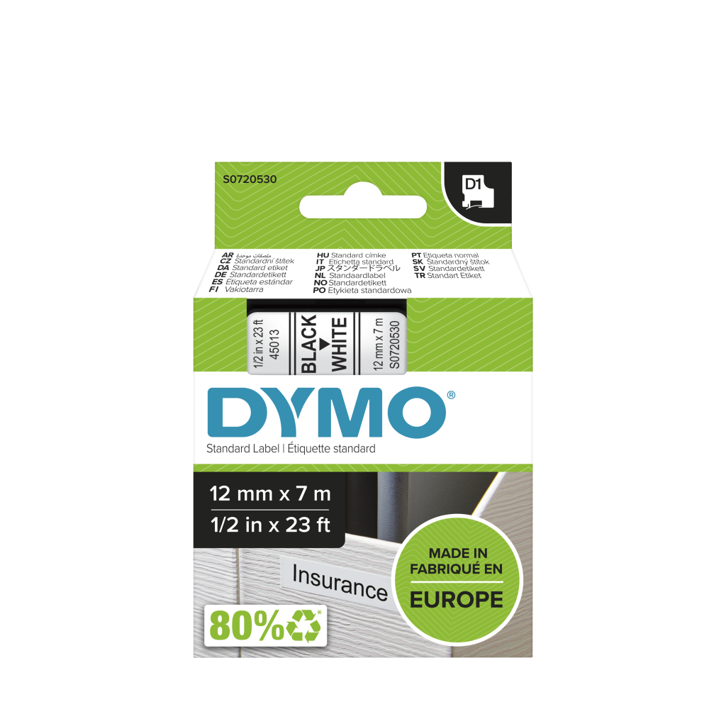 | Product description | Dymo Black on White Label Printer Tape, 12 mm Width, 7 m Length |