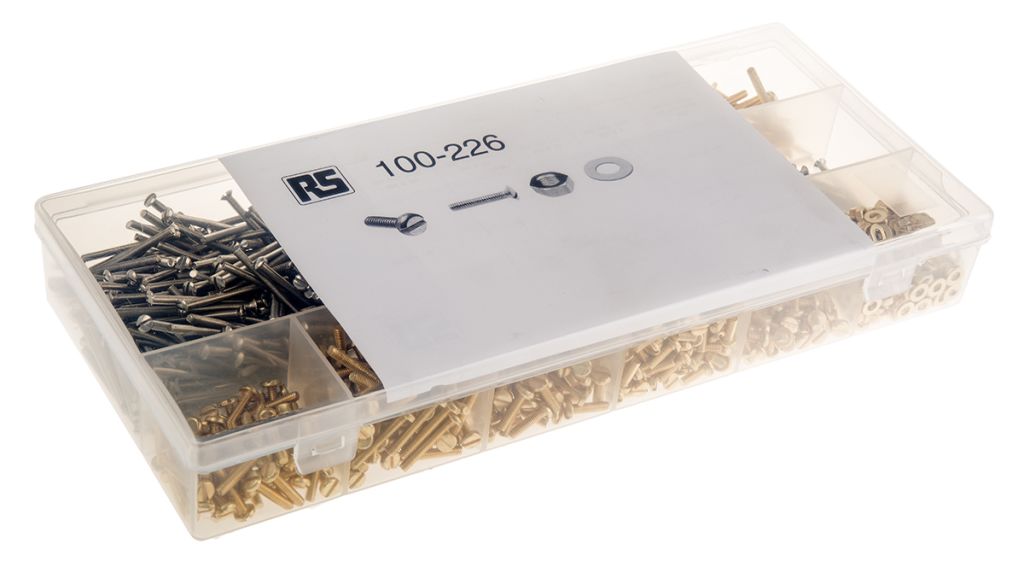| Product description | RS PRO Brass, Steel 1250 Piece Slot Drive Screw/Bolt, Nut & Washer Kit |