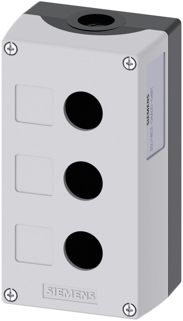 | Product description | Siemens Grey Plastic SIRIUS ACT Push Button Enclosure - 3 Hole 22mm Diameter |