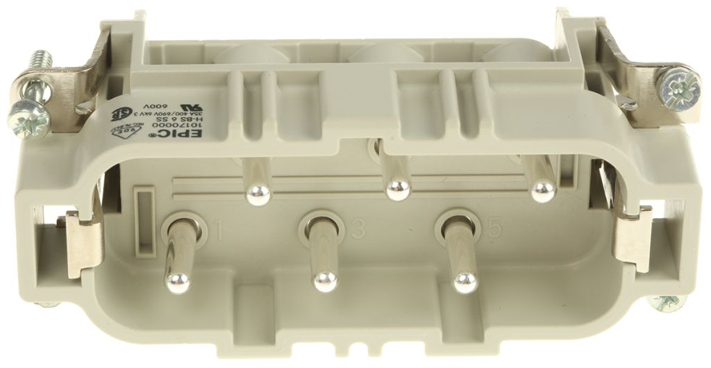 | Product description | Epic Contact H-BS Heavy Duty Power Connector Insert, 6 contacts, 35A, Male |