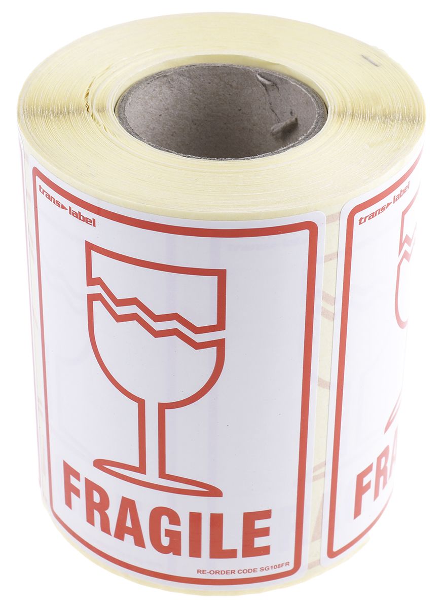 Product description RS PRO Paper Safety Labels, Fragile-Text 79 mm x 108mm
