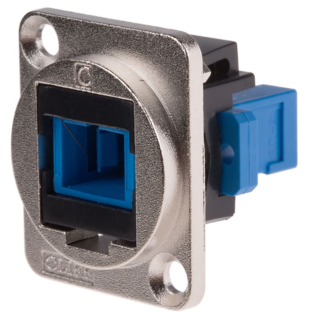 • Stock No. 907-5646 is a metal FT SC SIMPLEX SM Feed Through Connector with countersunk screw holes.