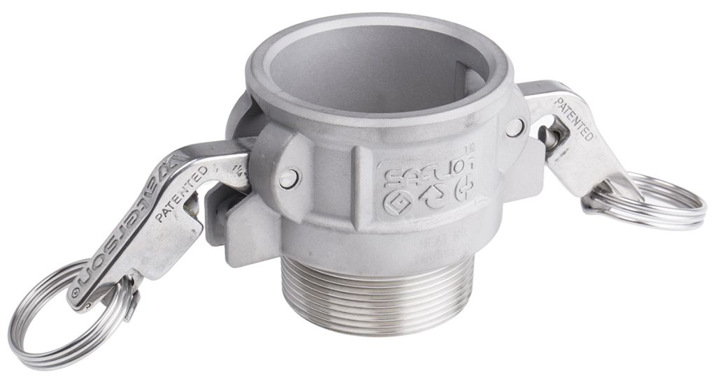 SAFLOK™ B Couplers are self-locking stainless steel quick-fit hose couplings with a male thread, compatible with standard 'part B' cam and groove couplings. The design offers a safe way to connect - and keep connected - liquid-carrying hose, without the need for tools.