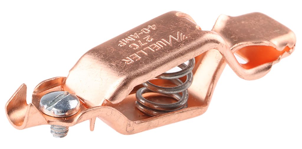 A concise offering of steel and copper alligator and crocodile clips from Mueller suitable for applications including grounding clips, test meters clips, battery terminal connection and many others that require a durable and hardwearing alligator or crocodile clip.