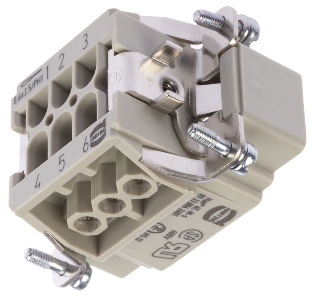 | Product description | HARTING Han E Heavy Duty Power Connector Insert, 6 contacts, 16A, Male |