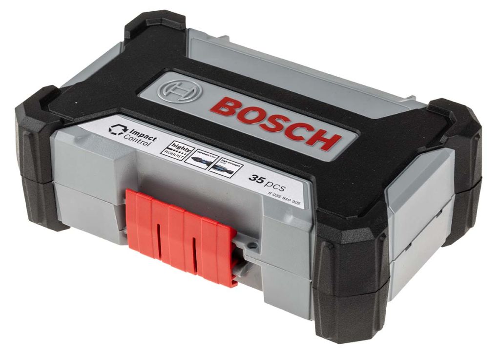 Bosch 35 piece impact control multi-construction and screwdriver bit set designed for use with all impact and drill drivers for heavy-duty applications. The drill bits are suitable for drilling most materials including masonry, brick, light building materials, ceramics and tiles, wood, plastic, and metals.