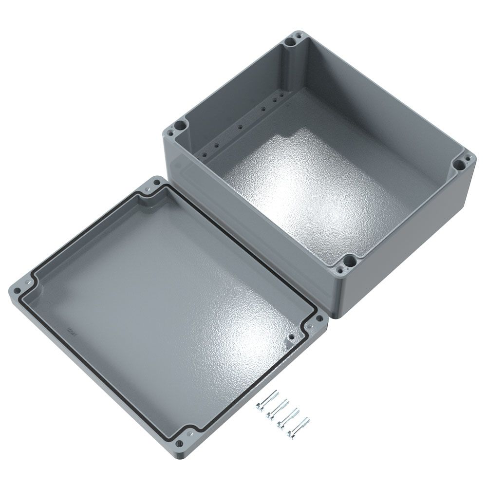 Aluminium enclosure consisting of lid, seal, Including Stainless Steel screws base with 2 or 4 earthing screws.