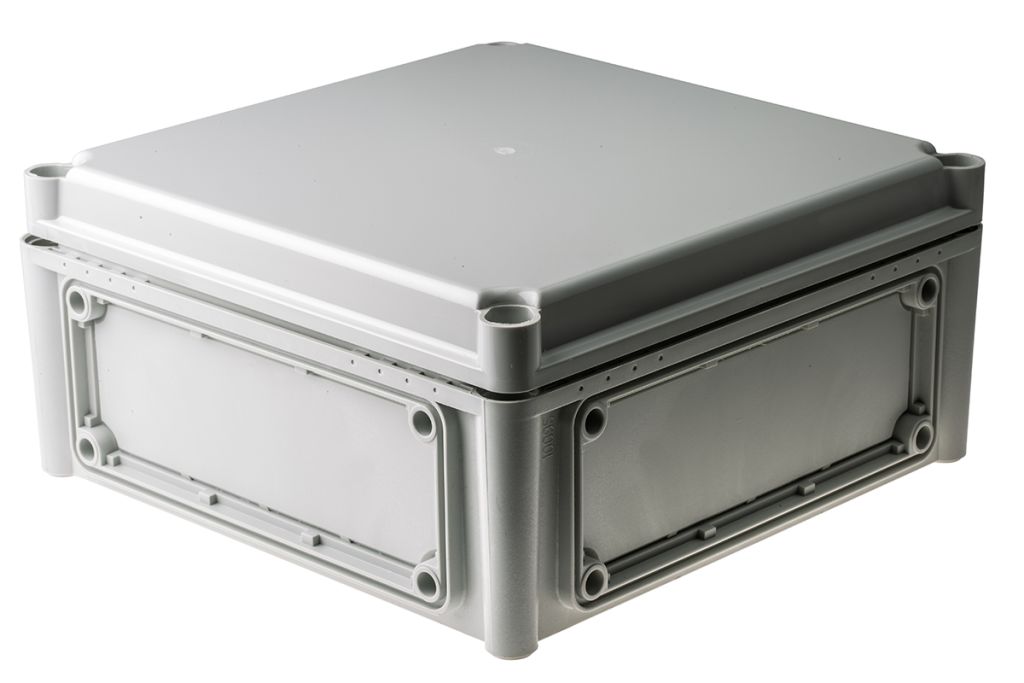 Fibox EK series enclosure, ideal for housing electrical equipment in either a single enclosure or a flexible modular system. These polycarbonate enclosures are impact resistant, self-extinguishing and resistant to most acids and alkalis. The temperature range of the enclosure material is -40°C to +120°C, (+80°C for continuous use) and the flammability rating is UL94-V2.