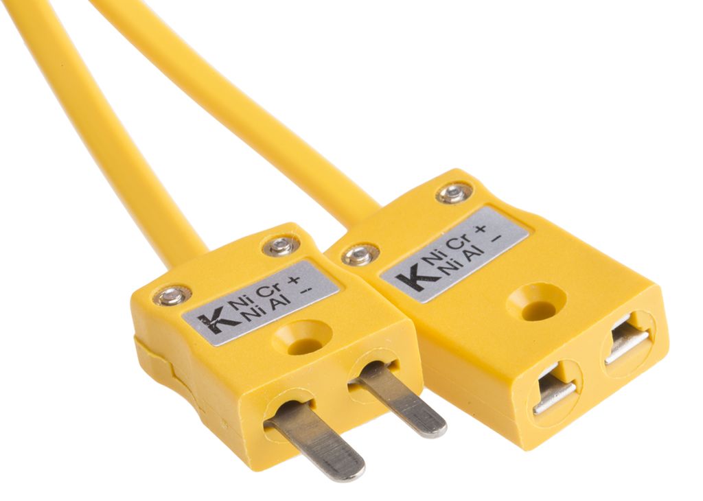 ANSI PVC insulated thermocouple cable with plug and socket. Thermocouple extension types K & J, 2 or 5 metre lengths available