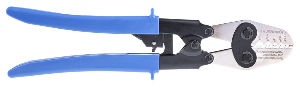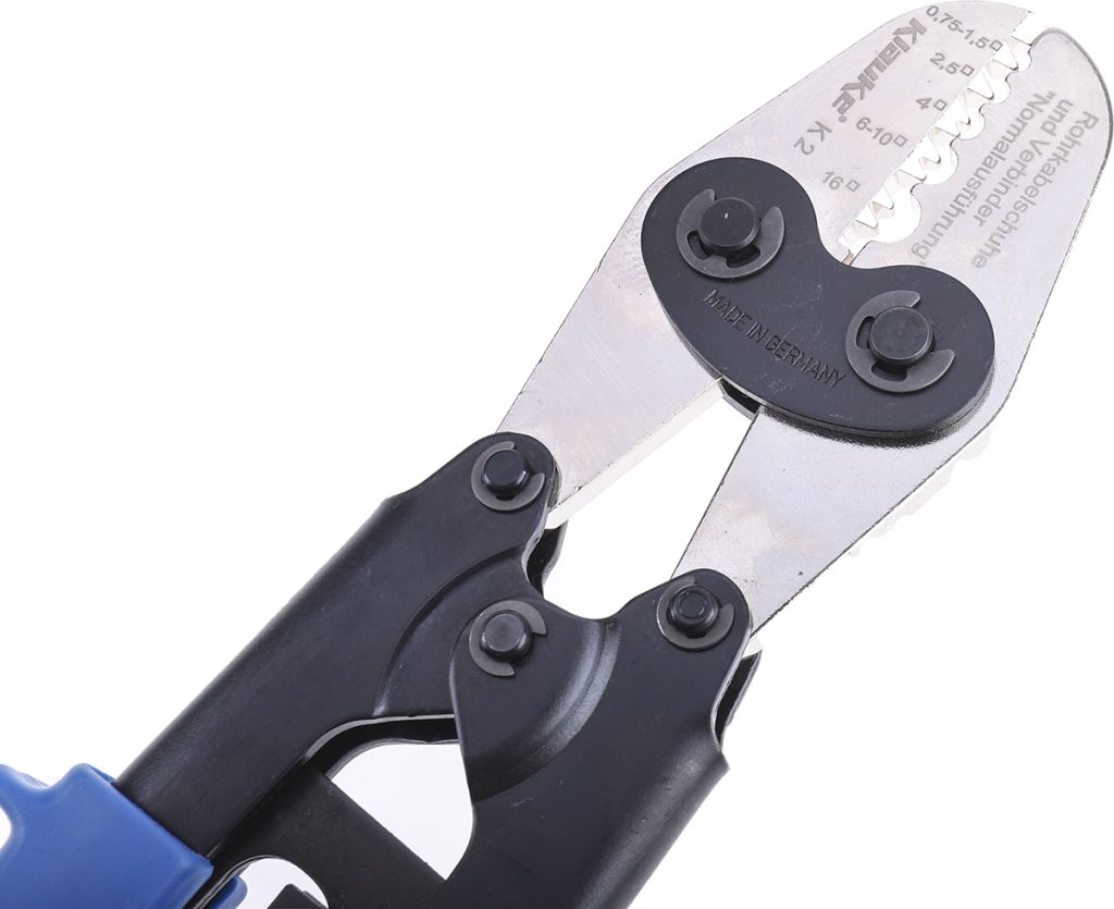 The Klauke K2 Crimp Tool is a high-quality hand tool designed for crimping terminals, bootlace ferrules in a cross-section from 0.75 mm² to 16 mm². The K2 has marked crimping indents for the different terminal sizes and a ratchet mechanism that ensures secure, high-quality crimps at every time.