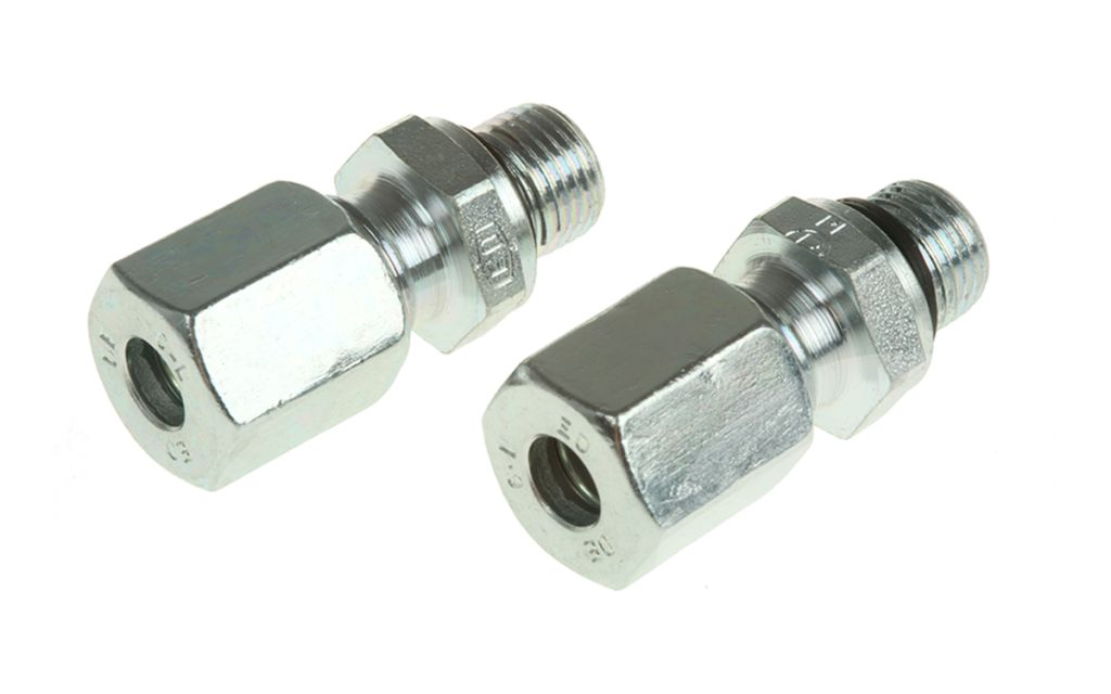 Ermeto Original or EO® progressive ring fittings, for metric tube, are manufactured from mild steel, with zinc plated and passivated finish. They are available in light duty and heavy duty series to cover a wide range of pressure ratings. Each fitting comes with a tube nut but the bite ring will need to be ordered separately. The progressive ring bite produces a keyed leak-free tube connection. The range of fittings is intended purely for the assembly of connections for fluid applications. All fittings are supplied with an instruction leaflet. For steel fittings it is recommended that seamless drawn steel tubes to DIN 2391/C are used. Operating temperature range without pressure reductions for the steel fitting material is -40°C to +120°C.