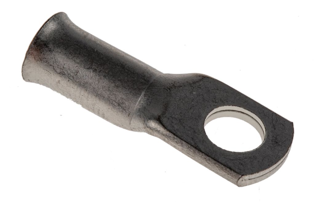 From RS PRO a high-quality heavy-duty tubular crimp ring terminal, also known as a ring connector or cable lug. Heavy duty ring crimp terminals are used for connecting multi-stranded cables to a stud or a post on an electrical component such as a battery terminal. This tubular ring terminal is made from thick-walled, heavy-duty, highly conductive copper and is tin plated. Once correctly crimped onto a cable this ring terminal will provide a secure and reliable electrical connection.