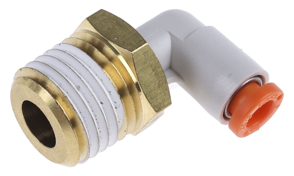 SMC KQ2 Series Elbow Threaded Adaptor, NPT 1/4 Male to Push In 5/32 in, Threaded-to-Tube Connection Style