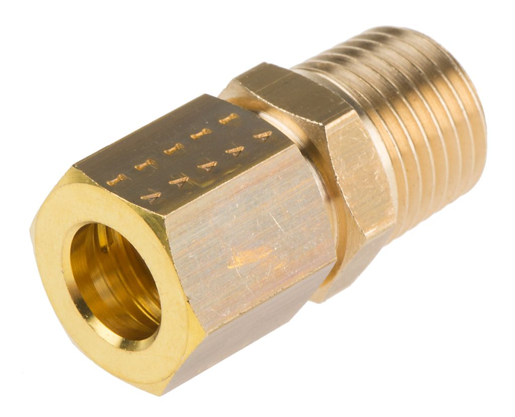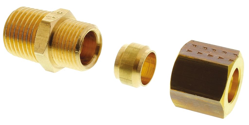 Brass fittings for fluid distribution. Suitable for connecting steel, copper and nylon tubing. Applications include compressed air, hydrocarbon, water and lubrication.