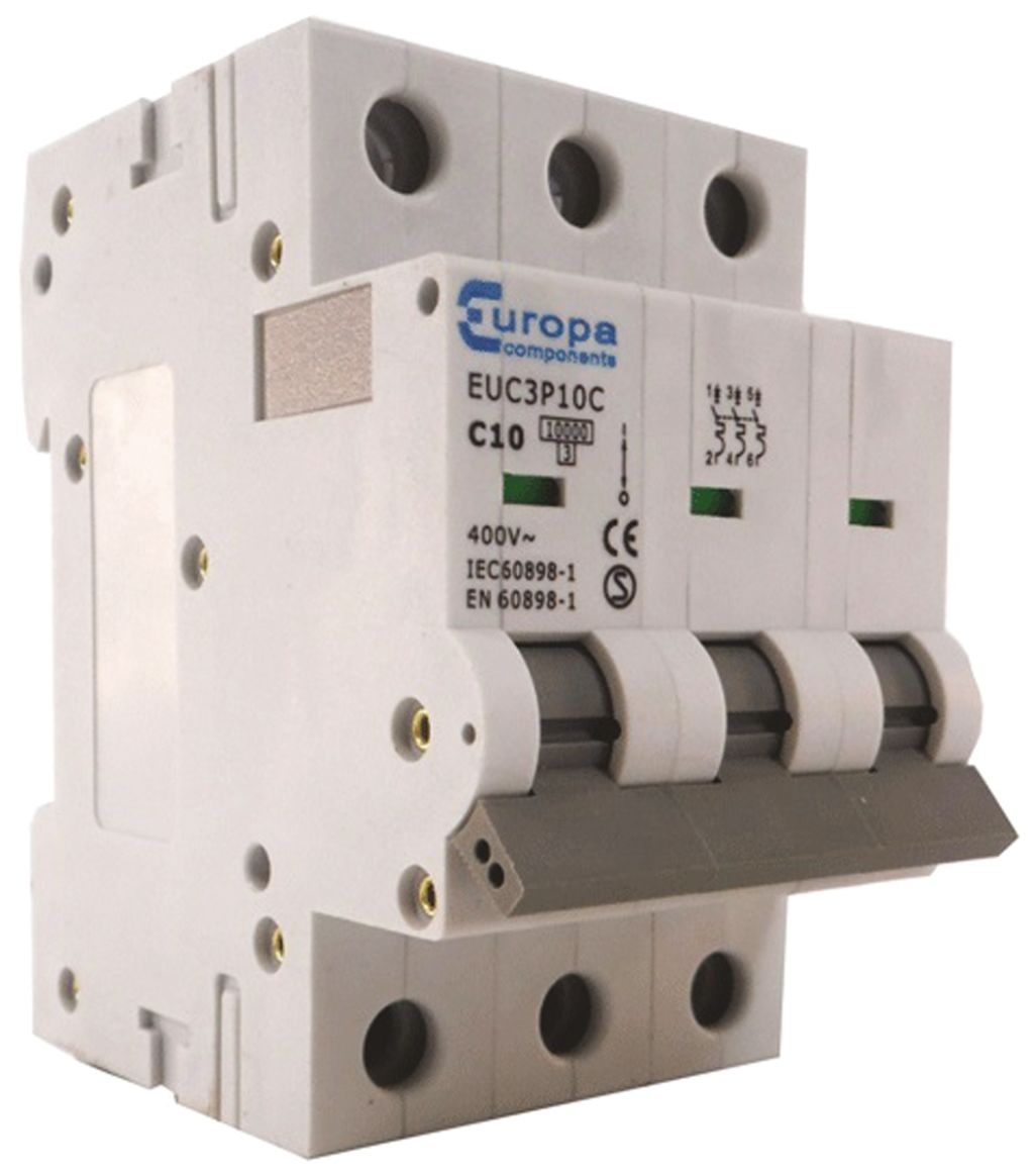 Europa EU 16A MCB Mini Circuit Breaker3P Curve C, Breaking Capacity 10 kA, 230/400V