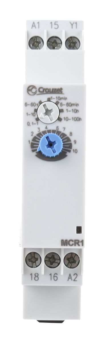 | Product description | Crouzet SPDT Timer Relay, OFF Delay, 24 → 240 V ac, 24V dc 0.1 s → 100h, DIN Rail Mount |