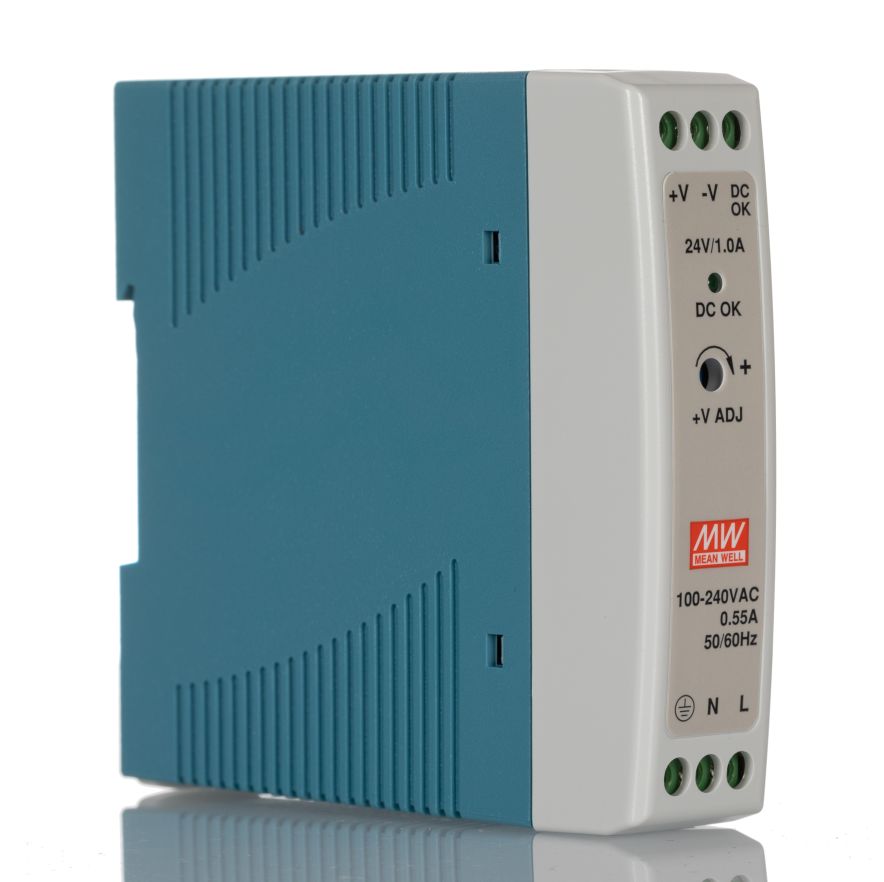 | Product description | Mean Well MDR Switch Mode DIN Rail Power Supply 85 → 264V ac Input, 24V dc Output, 1A 20W |
