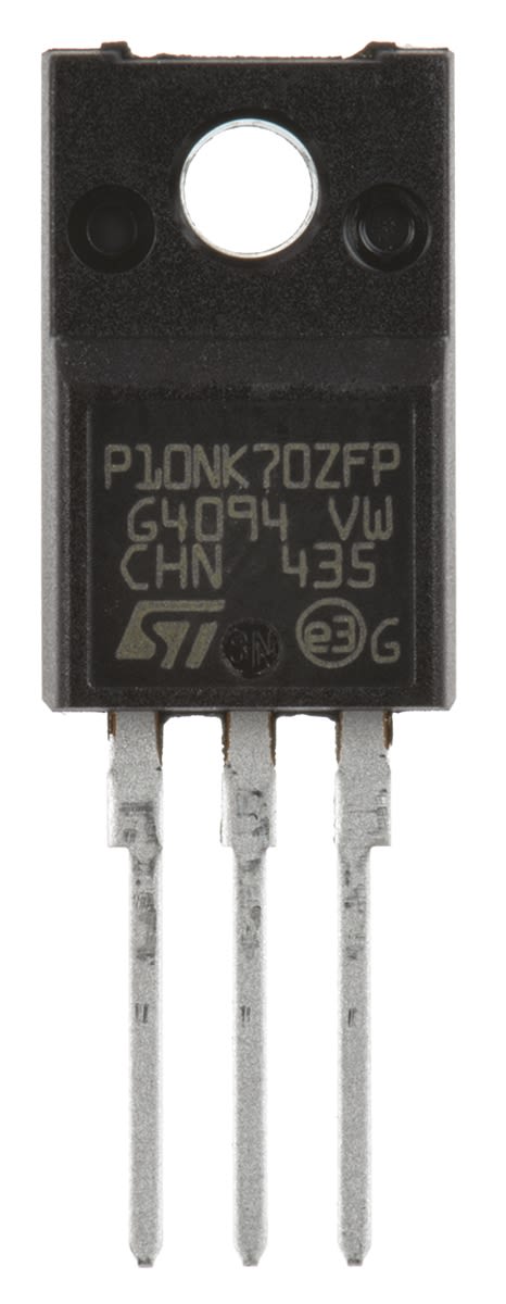 | Product description | N-Channel MOSFET, 8.6 A, 700 V, 3-Pin TO-220FP STMicroelectronics STP10NK70ZFP |