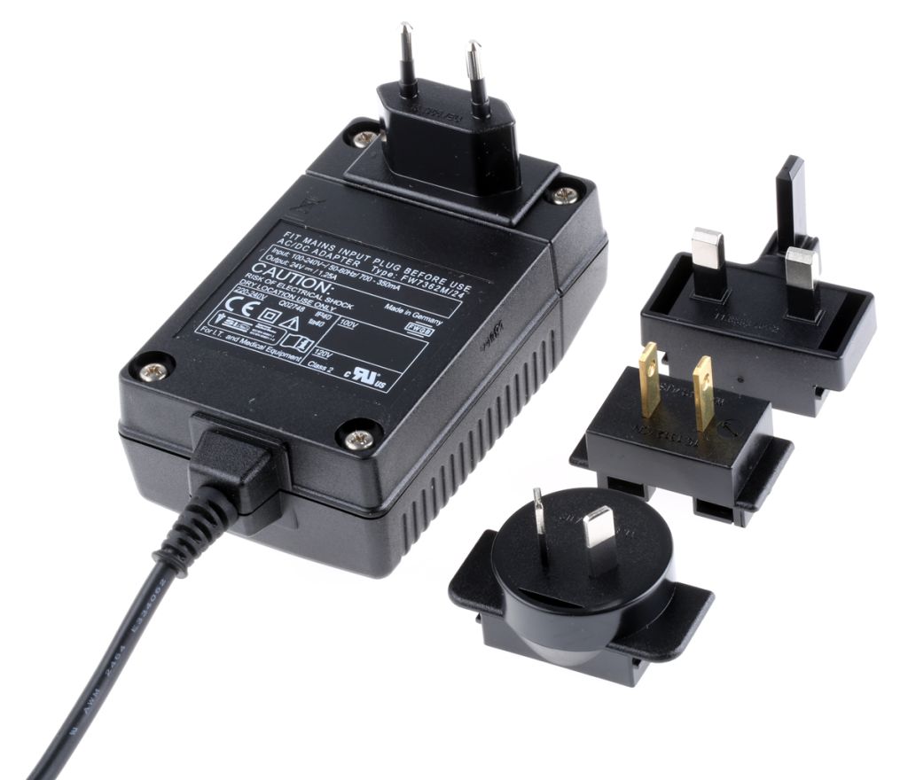Supplied complete with interchangeable mains plugs for use in UK, Europe, USA, Japan and Australia