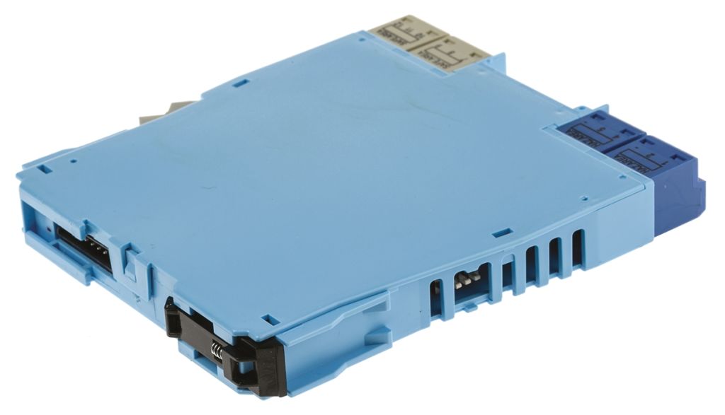 DIN-rail mounting and plug-in signal and power connectors simplify installation and maintenance. These IS units are powered from a 20 to 35 V dc supply voltage, or, in some cases, from the signal itself.
