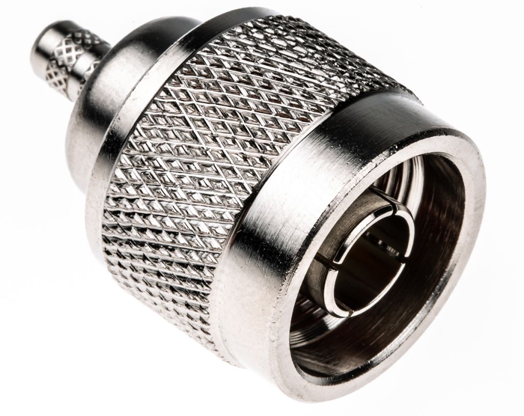 50 Ohm N series RF coaxial crimp plug connector with a teflon dielectric, a nickel plated body and gold plated centre contact. This 50 Ohm N series RF coax plug connector is suitable for use with RG58 C/U and RG 58/U coaxial cable.