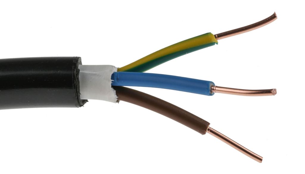 This electrical mains power cable consists of cores made up of IEC 60228 class 1 solid copper conductors. Each individual core is surrounded by colour coded PVC (Polyvinyl Chloride) insulation for easy identification of the wires. The cores are then surrounded by a final outer layer of a tough PVC called a sheath or jacket. This power cable also has a filler compound which fills the gaps between the cores and the outer sheath to give the cable a round shape.