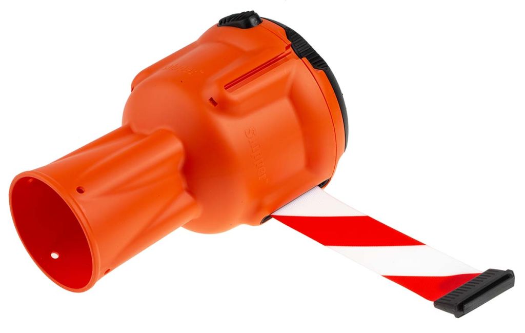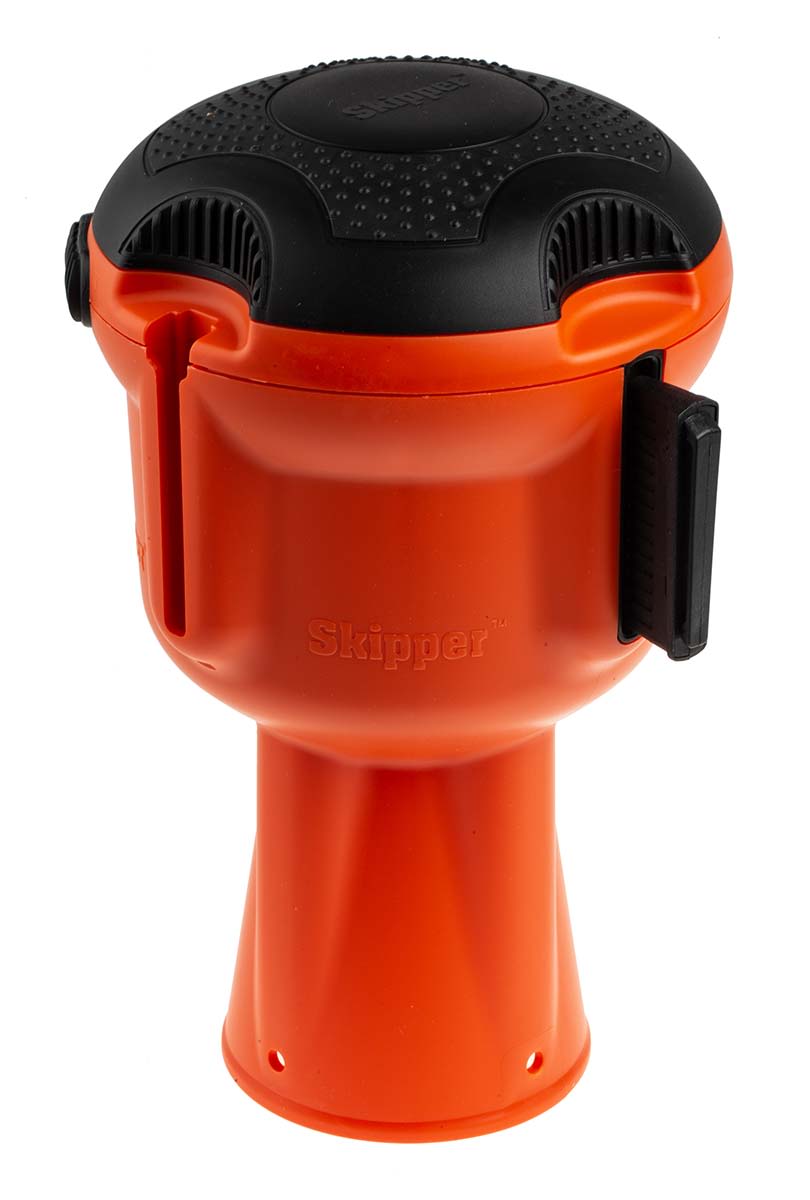 This Skipper unit houses 9 metres of retractable barrier tape which can be used again and again, saving time, money and space in the long-term versus throw-away barrier tape.