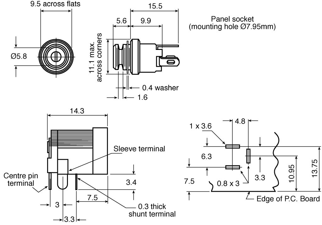 | Product description | RS PRO DC Socket Rated At 5.0A, 12.0 V, Panel Mount, length 21.3mm, Nickel |