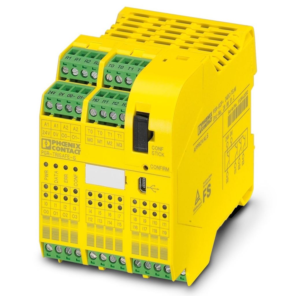 | Product description | Phoenix Contact PSR-TRISAFE PSR-SCP- 24DC/TS/S Series Safety Controller, 20 Safety Inputs, 6 Safety Outputs, 24 V dc |