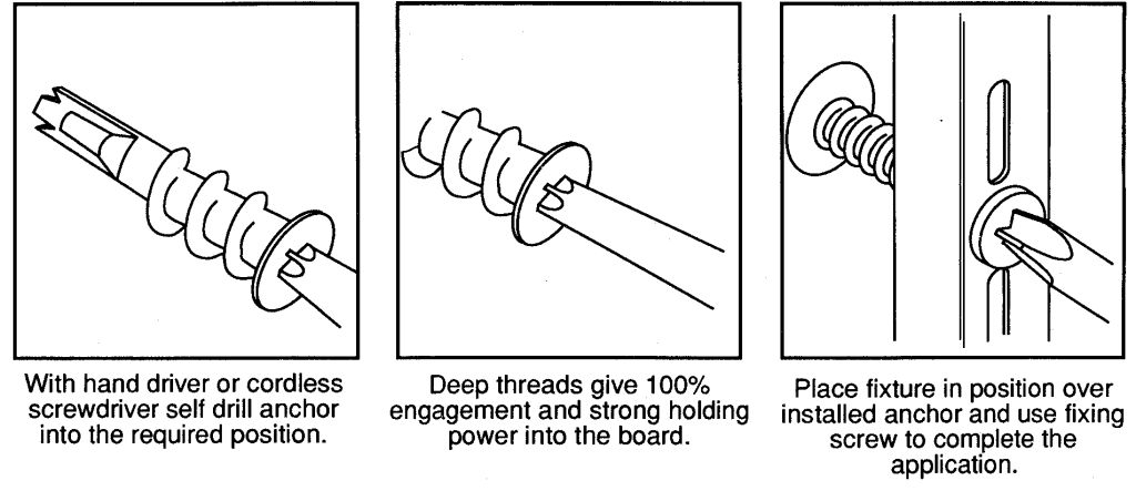 A zinc alloy plasterboard anchor which is quick and easy to install. A self drilling fixing suitable for plasterboards, double boards and aerated cement blocks.,Designed for light to medium applications such as pipe brackets, switch boxes, light fittings, shelving etc.
