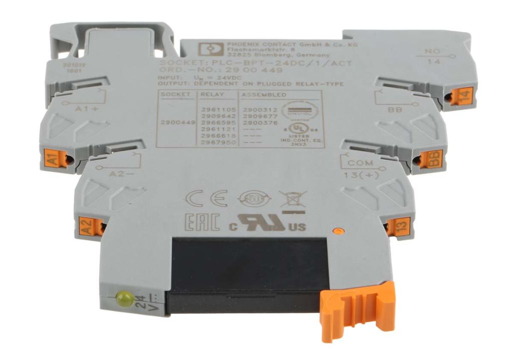 | Product description | Phoenix Contact 24V dc SPNO Interface Relay Module DIN Rail Mount, PLC-OPT- 24DC/ 24DC/2/ACT |