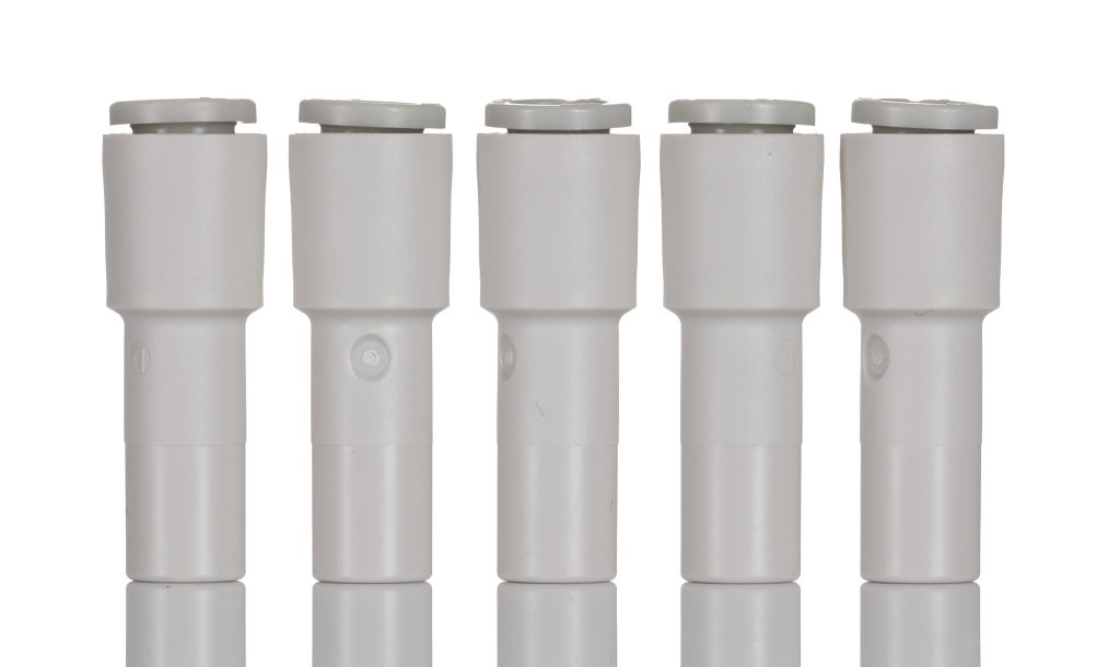 The KQ2R plug-in reducer fittings from SMC are quick and easy to install into your pneumatic fittings. These KQ2R plug-in reducers are also more compact in design which means that these connectors can be used within a confined space. Plug-in reducers are designed to change the size of one-touch fittings. The new KQ2 range of products are lighter than previous models and have the advantage of improved insertion and removal forces.