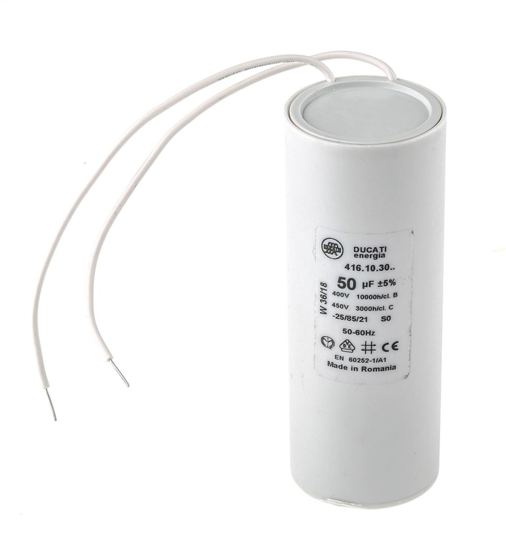 Product description Ducati Energia 4.16.10 Polypropylene Film Capacitor, 450V ac, ±5%, 50μF, Plug In