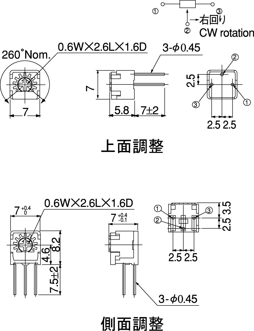 | Product description | 100kΩ, Through Hole Trimmer Potentiometer 0.5W Side Adjust Copal Electronics, CT-6 |