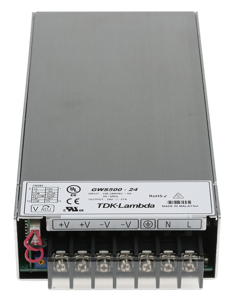 | Product description | TDK-Lambda Embedded Switch Mode Power Supply SMPS, 24V dc, 21A, 504W Enclosed |