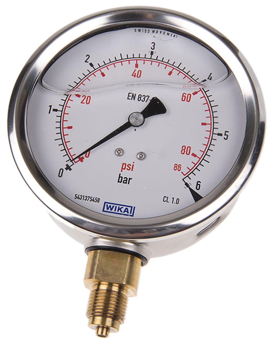 WIKA 7075546 Analogue Positive Pressure Gauge Bottom Entry 6bar, Connection Size G 3/8
