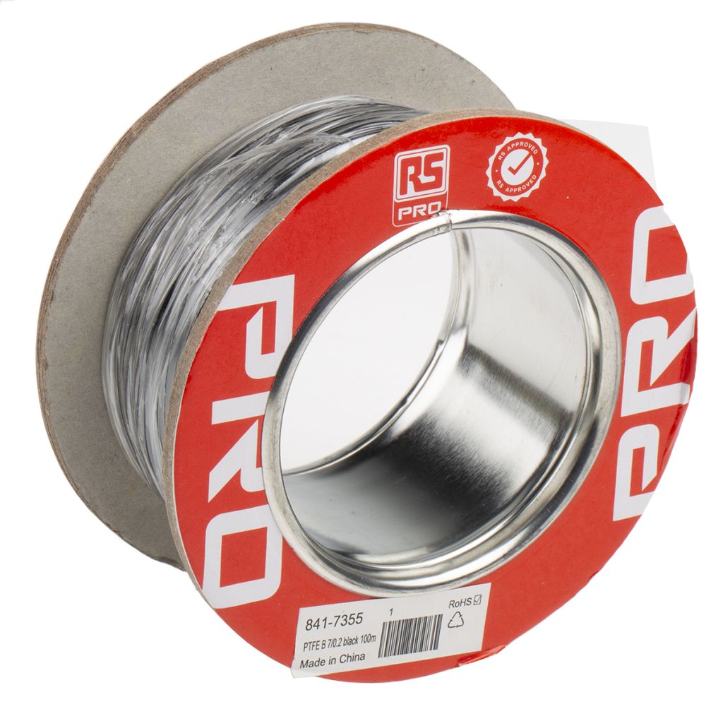 | Product description | RS PRO Black 0.22 mm² PTFE Equipment Wire, 24 AWG, 7/0.2 mm, 100m |