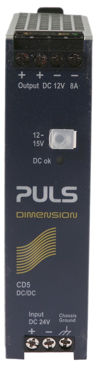 | Product description | PULS DIMENSION-CD 96W Isolated DC-DC Converter DIN Rail Mount, Voltage in 18 → 32.4 V dc, Voltage out 12V dc |