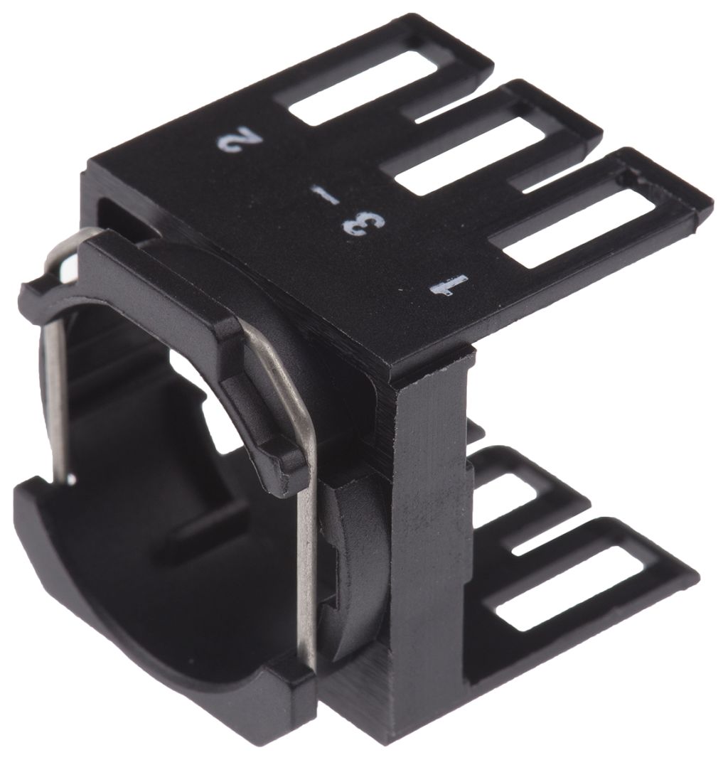A range of IP65 protected components which are easily and quickly mounted in 16mm diameter holes. Each component can be ordered separately to build the required device. Also available are contact blocks with slow-break positive opening contacts with ’Faston’/solder connections. Rating Ue 250Vac, Ie 1.5A; Ue 250Vdc, Ie 0.1A, Io A Ith operating temp. -25 to +70°C.