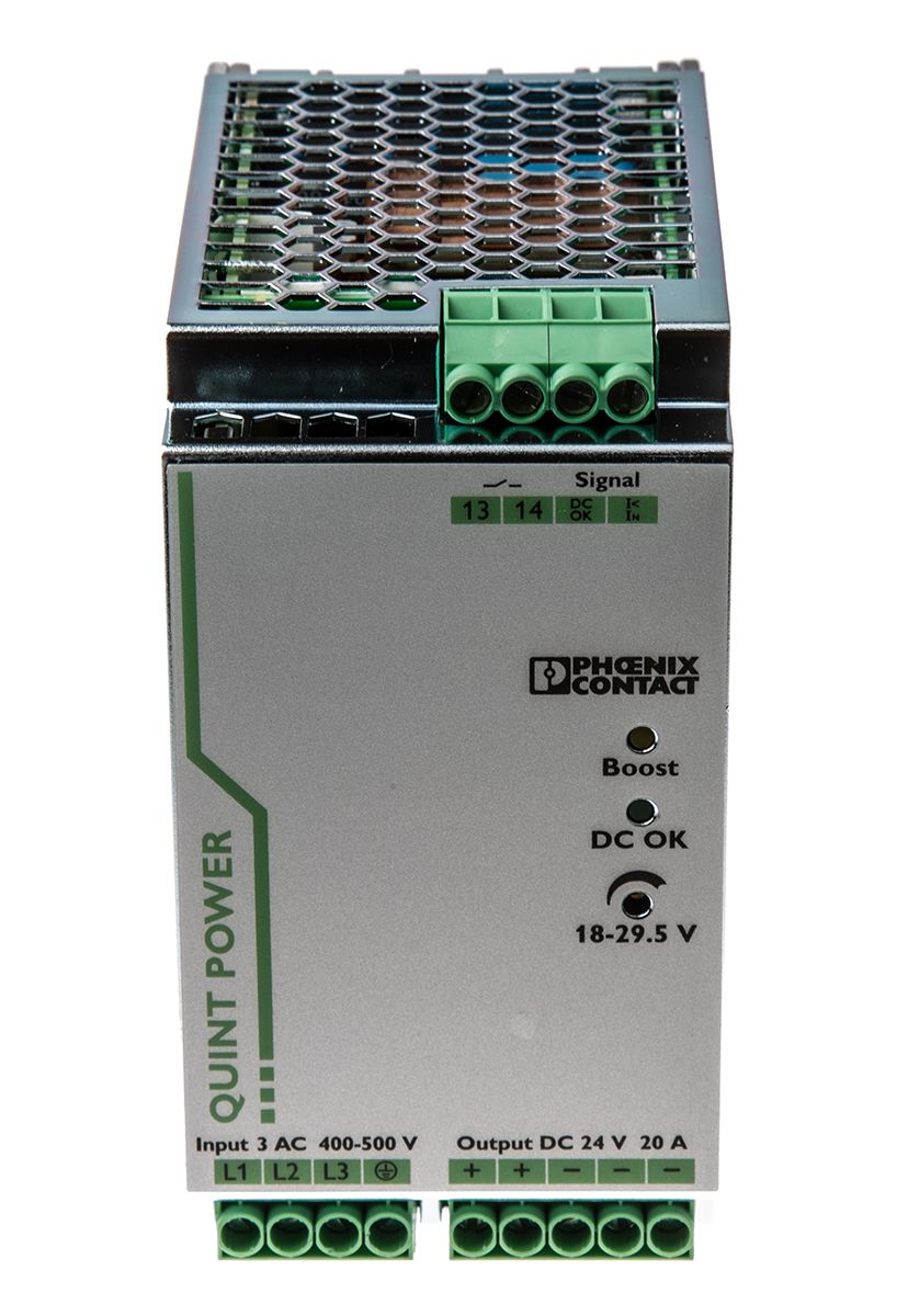 Phoenix Contact QUINT-PS/3AC/24DC/20 Switch Mode DIN Rail Power Supply 400V ac Input, 24V dc Output, 20A 480W