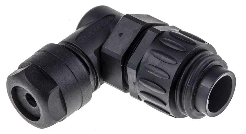 From Amphenol, these right angle Eco Mate series circular connectors have a compact and robust design, with a screw lock connection that meets the high requirements of industrial technology applications. The 90° Eco Mate circular connectors are easy to assemble and are supplied with fittings which include strain relief, mounted gaskets, cable glands and clamping rings. The screwed cable gland has a robust thread for a secure connection.