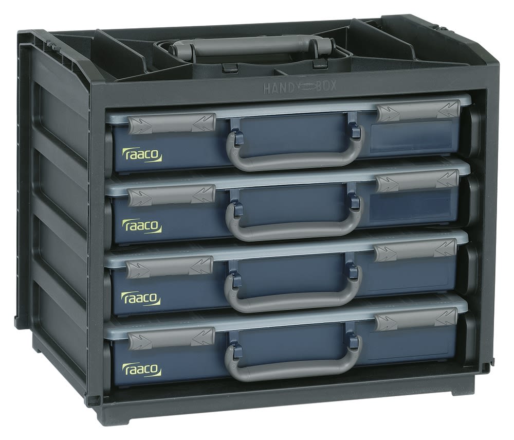 | Product description | Raaco 64 Cell Black, Grey PC, PP, Adjustable Compartment Box, 310mm x 376mm x 265mm |